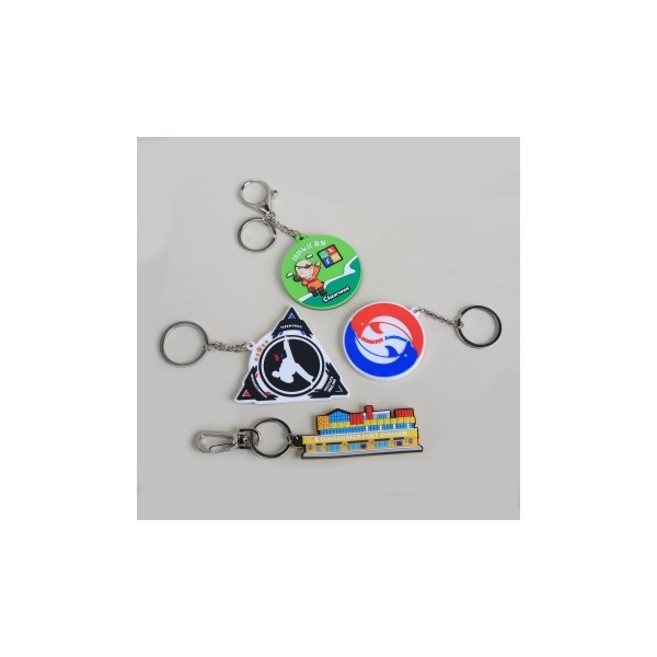 고무 양면 열쇠고리들이 전시되어 있습니다.